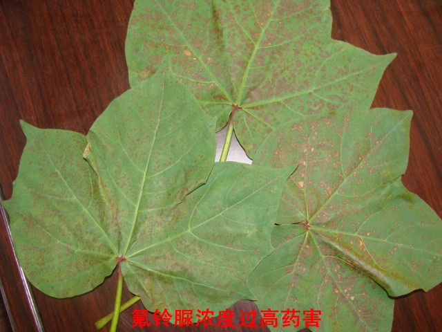 ⑴急性藥害:在噴藥后幾小時(shí)至幾天即表現(xiàn)出來(lái)。如葉片、果實(shí)出現(xiàn)斑點(diǎn)、卷葉、落葉、失綠等。